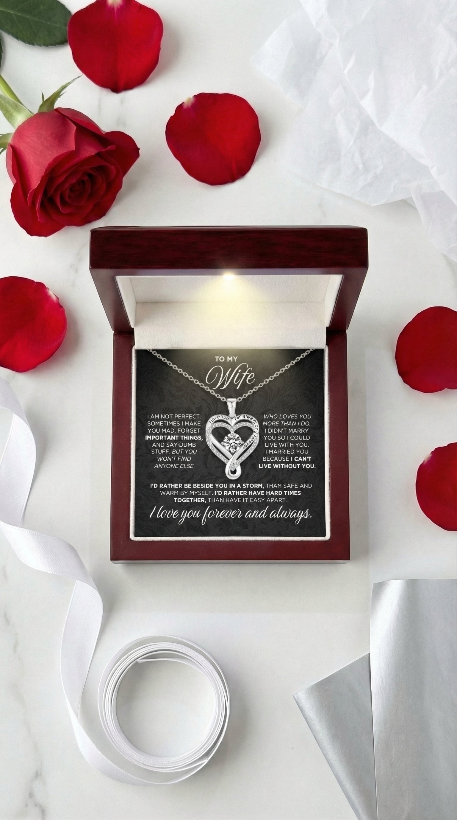 Some gifts are nice, this one means something. This necklace is a simple way to show her you still see her, appreciate her, and choose her, even when life gets busy.